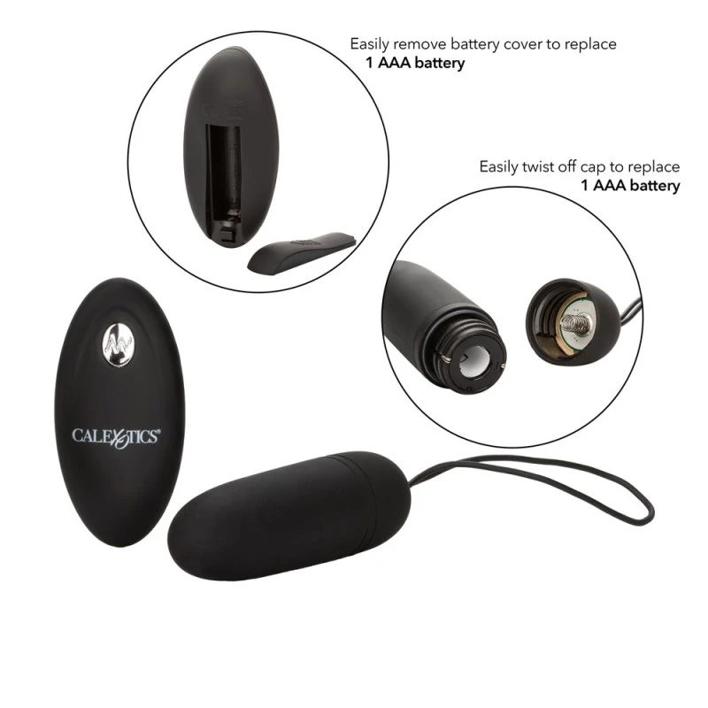 Grace à un cordon de retrait, l’œuf se retire facilement et en toute sécurité. Fabriqué à partir de silicone haut de gamme, sans phtalates et 100% Waterproof. Fonctionne avec 2 piles AAA (non fournies).