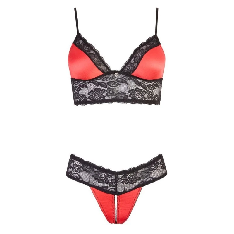 Découvrez l’Ensemble 2 Pièces Satin & Dentelle Rouge et Noir de Cottelli Collection, une lingerie rouge et noire, avec ouverture à l’entrejambe !