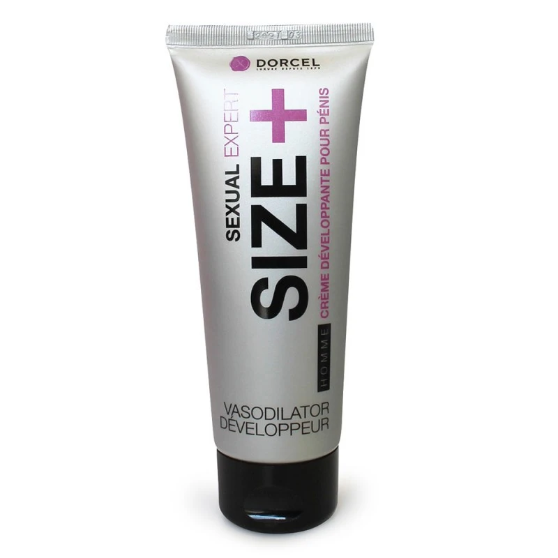 Découvrez la Crème Développante Size + de Dorcel ! Grâce au pouvoir du Gingseng brésilien qui stimule la vasodilatation des corps caverneux, cette crème augmente vos érections et votre performance.