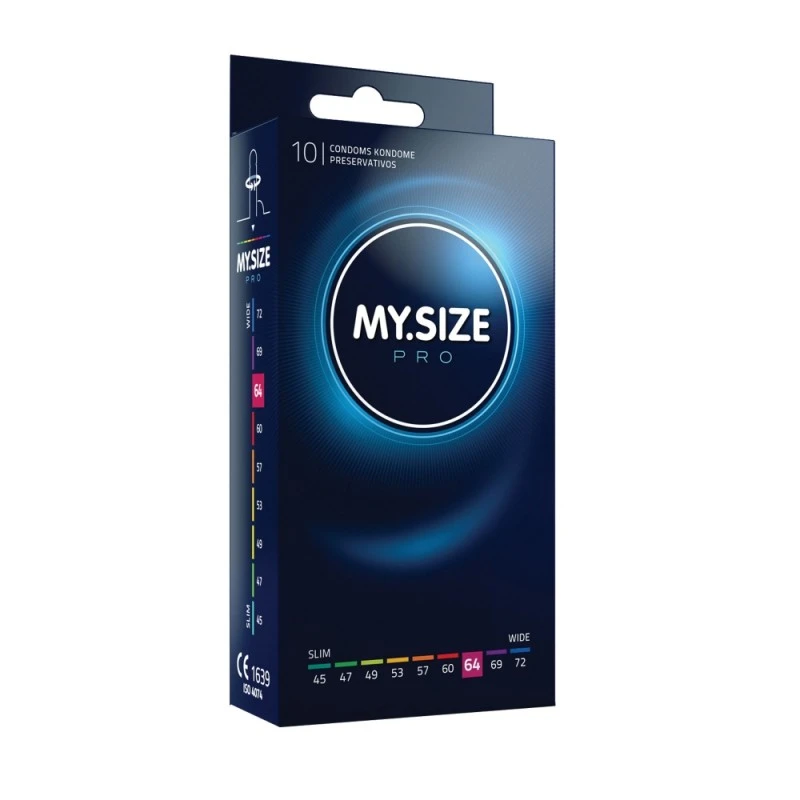 Découvrez la Boîte de 10 Préservatifs MY.SIZE Pro 64 mm, des préservatifs adaptés à votre taille pour vous permettre de profiter de rapports sécuritaires et confortables ! Peu importe votre taille, vous trouverez forcément des préservatifs qui vous conviendront avec MY.SIZE !