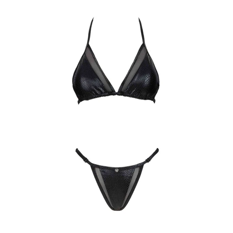 Découvrez le Maillot de Bain 2 Pièces Punta Negra Wetlook Noir de la marque Obsessive ! Son effet cuir noir brillant habillera vos courbes avec sensualité sur la plage !