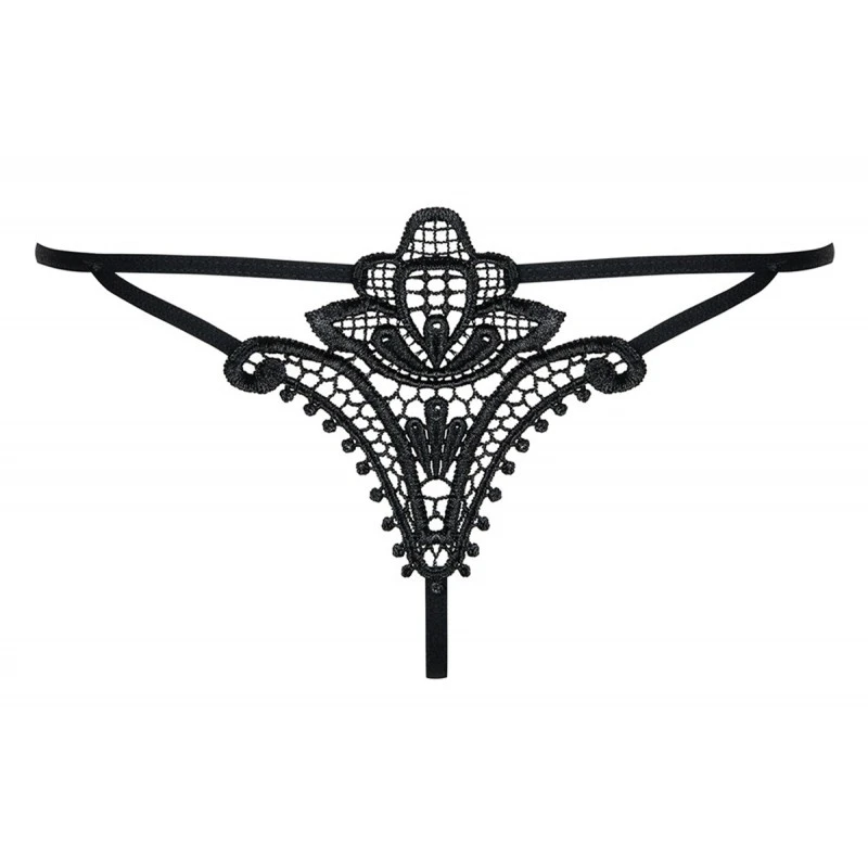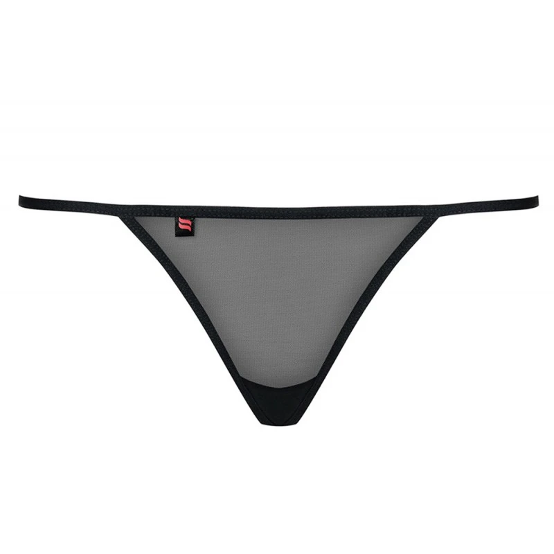 Le String Luiza Noir de la marque Obsessive est un string en voile noir transparent, broderie motif floral au dos, l’accessoire sexy de vos tenues !