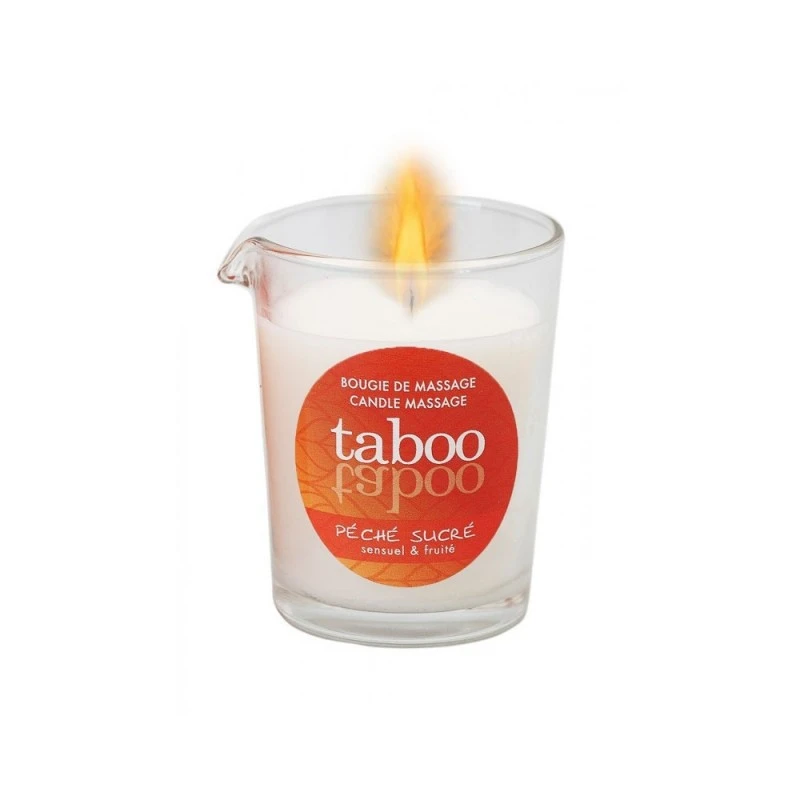 Découvrez la Bougie de Massage Péché Sucré Pêche Taboo pour Elle de RUF, une bougie parfumée à la pêche pour passer un moment intimement excitant.