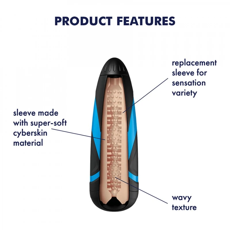 Laissez-vous emporter par les vagues du plaisir avec la Gaine pour Masturbateur Satisfyer Men Kinky Waves. Des centaines de picots vous enveloppent et prennent soin de vous grâce à une mode de succion unique ! Avec cette aventure délicieusement sensuelle, le plus difficile sera de revenir sur la rive…